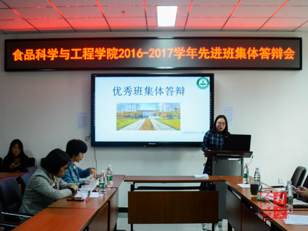 10月17日中午,WilliamHill中文于食品楼218组织开展了2016-2017年度先进班集体答辩。学院党总支副书记、副院长王雪、班主任王芳、团委书记罗蕊、辅导员张明婧等老师担任评委。2015、2016级两个年级的班长作为代表参加答辩,2017级各班班委旁听并学习班级管理经验。