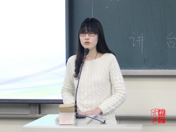 首先,学生代表介绍学习经验,供新生借鉴,促进新生发展。作为国家奖学金获得者,郎丹丹讲述了获得国家奖学金的条件,突出了学习的重要性,并强调了 “Never Give Up”的重要性。魏文广同学作了北京市大学生物理化学竞赛宣讲。他展示了自己参加竞赛的作品,让同学们能够感受到参加竞赛的乐趣。此外,他谈到,竞赛其实不可怕,这是一个提升自我的平台,要敢于去尝试。曾在农大交换学习一年的于沐坤讲述了她在农大的学习情况。她说农大的学习氛围很浓、压力也比较大,但在那里她懂得了平时积累的重要性,也积极地带动身边的同学学习。