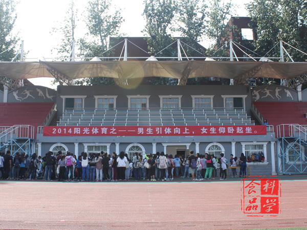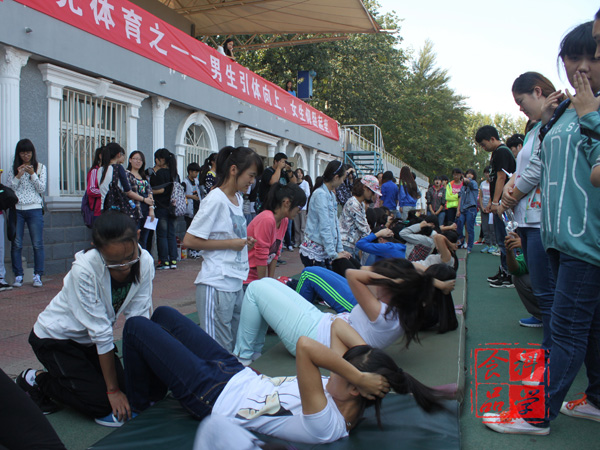 通过本次活动,同学们增强了锻炼的意识,增进了友谊。相信同学们会以此次活动为开端,更加明确走进操场进行体育锻炼增强自身身体素质的目标。男生引体向上和女生仰卧起坐是2014年教育部公布的大学生体侧新标准中的新增项目,伴随着新标准的出炉,你,准备好了吗?