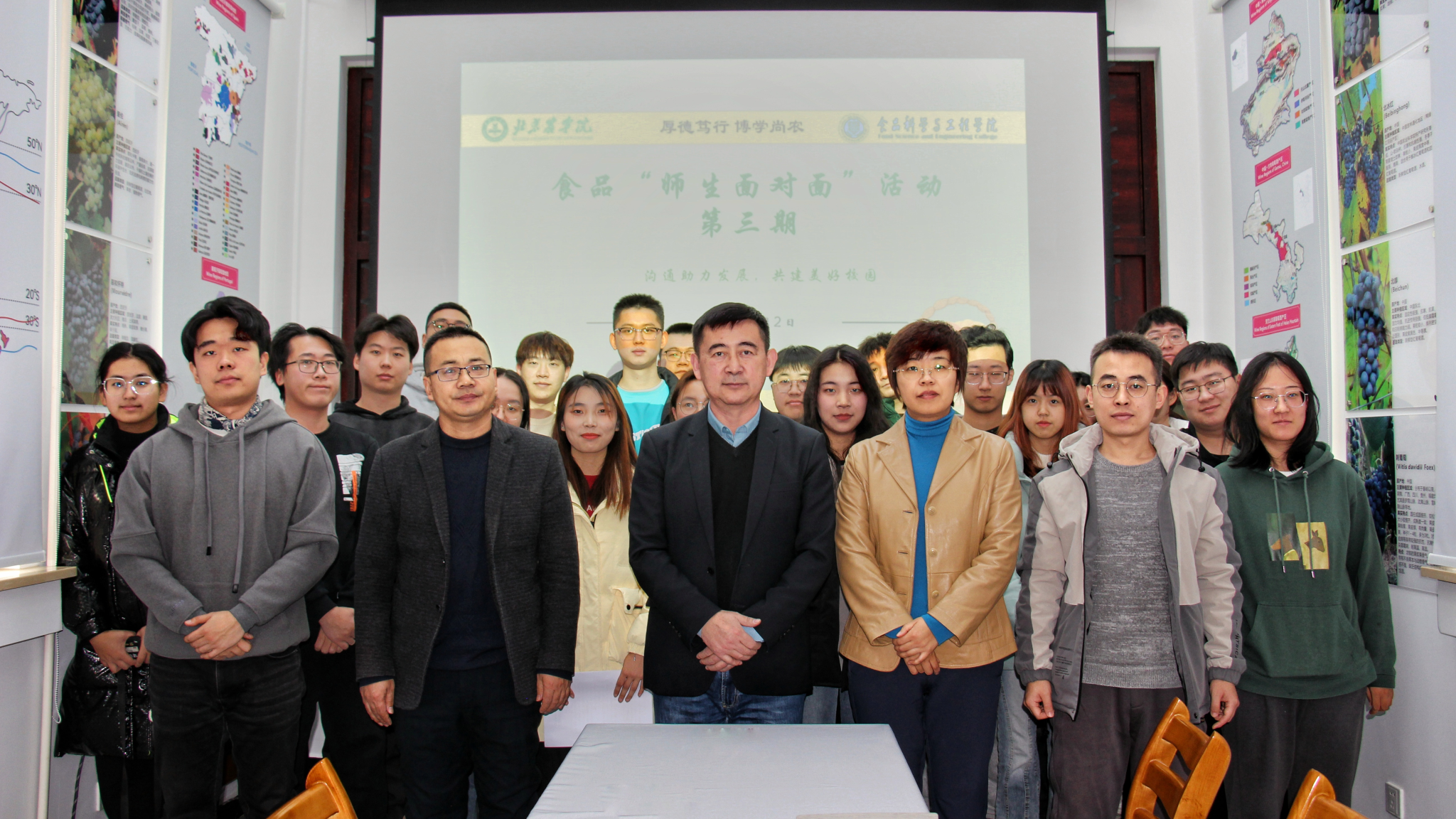 为推进食品学院学风建设,加强师生交流,了解学生的实际需求,帮助学生开阔视野,做好学业规划。1月2日,食品学院师生在品鉴实训室开展了第三期“师生面对面”交流活动。学院党委书记靳晓熙,学生工作负责人闻海洋,酿酒工程本科生党支部书记魏晓峰、辅导员任墨诺出席活动,本次活动由2023级本科生王晓琴主持。