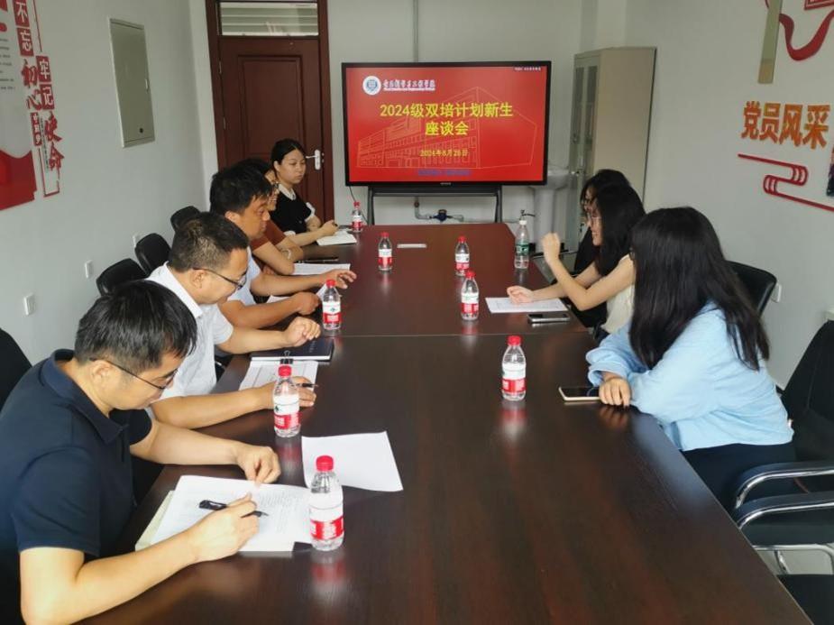 8月25日,为了使双培新生尽快适应即将开始的大学生活,了解双培计划培养方案,提高双培人才培养质量,WilliamHill中文在食品楼214召开新生座谈会,学院教学副院长丁轲、学生工作负责人闻海洋、食品科学与工程系系主任徐广谦、教学秘书段慧霞、辅导员官凌霄参加座谈。