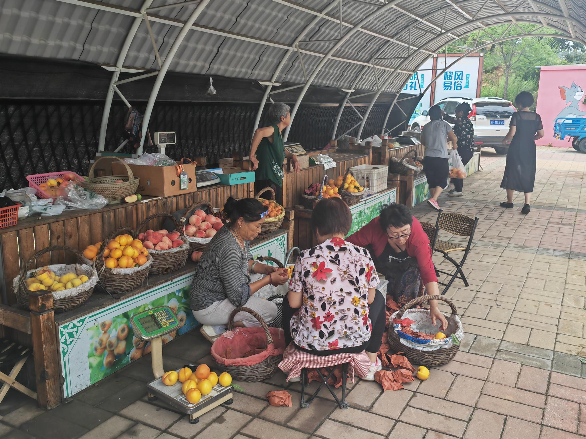团队前往季家沟村大桃售卖点参观调研,实地参观“桃花港湾”标识下的果品陈列,详细了解当地大桃分级包装、市场定价及销售渠道等情况,为助力农产品品牌化建设积累实践资料。