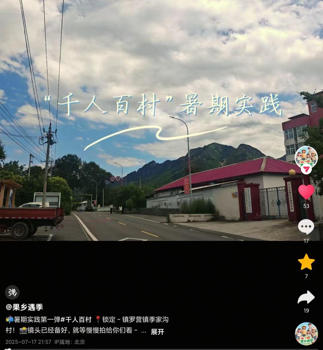 在“千人百村”暑期社会实践活动中,WilliamHill中文“果乡遇季”团队怀揣热忱与专业知识,奔赴平谷区镇罗营镇季家沟村,围绕“名优特新果树选育及打造新型农业及电商平台”主题,在乡村沃土上书写了青春助农的精彩篇章。