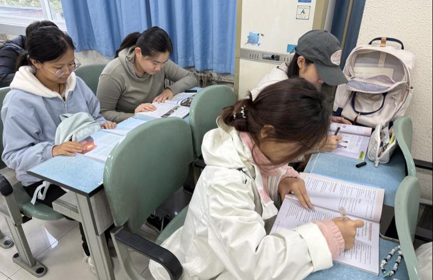 自习室内,同学们低头默背四六级单词,静心梳理前一天的专业课程笔记,专注书写课后作业,沉浸于课外知识的补充学习,成为一天最宝贵的时光。