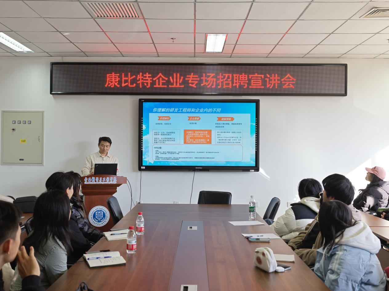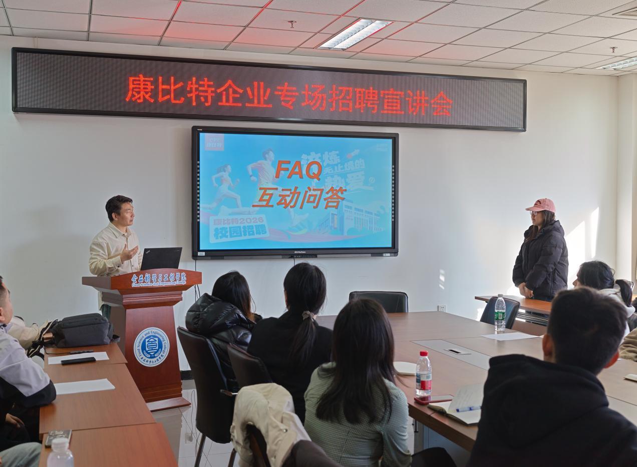同学们围绕招聘岗位的具体要求、应聘流程以及职业发展方向积极踊跃地提问。通过此次宣讲活动,同学们不仅对康比特的企业文化和人才需求有了更为深入的了解,也对自身的职业发展方向有了更进一步的认知。