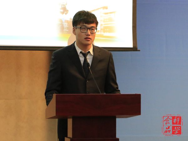 我院新生李翰卿作为学生代表进行发言,表达了身为一名新食品人,为食品行业做出自己最大的贡献的决心。