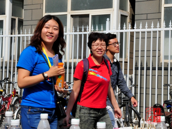 我院的迎新志愿者身着蓝色T恤衫,在各院的迎新大军中格外出彩。他们帮助新生办好入学手续,带领新生进入宿舍,耐心的为新生讲解学校的概况和注意事项,面带微笑的为刚刚到来的新生们送上了最热情周到的服务。