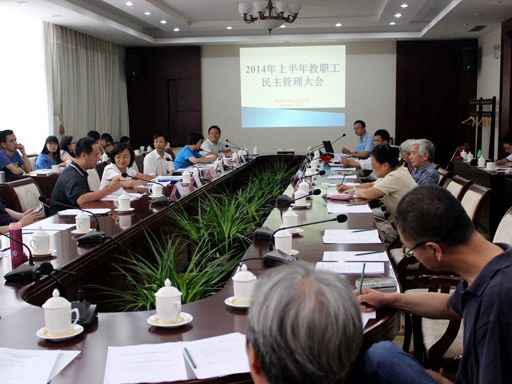 2014年7月4日下午,WilliamHill中文召开2014年上半年民主管理大会暨工作总结会。全院教职工、学生代表、学院领导班子参加会议。包装专业建设顾问孙容芳教授、学院督导史习加、贾友苏老师应邀参会,会议由院分工会主席党登峰主持。