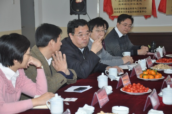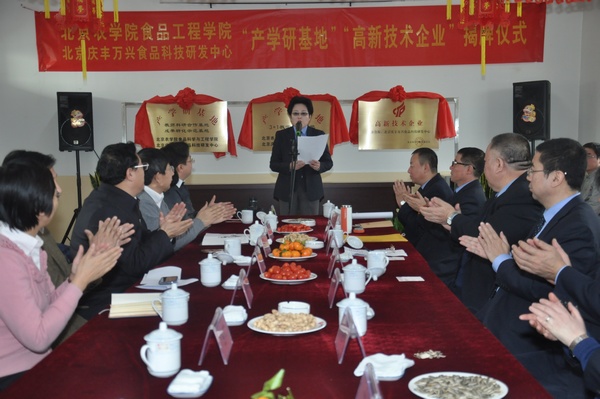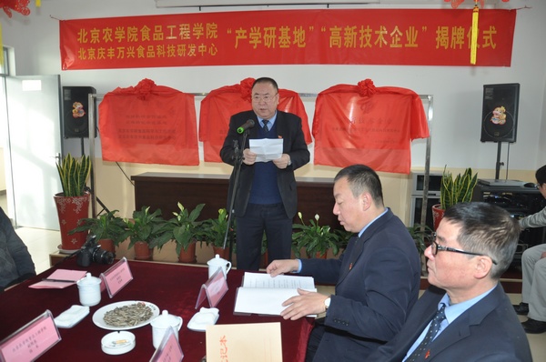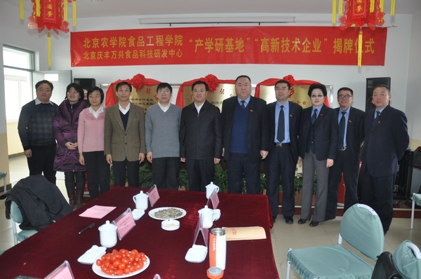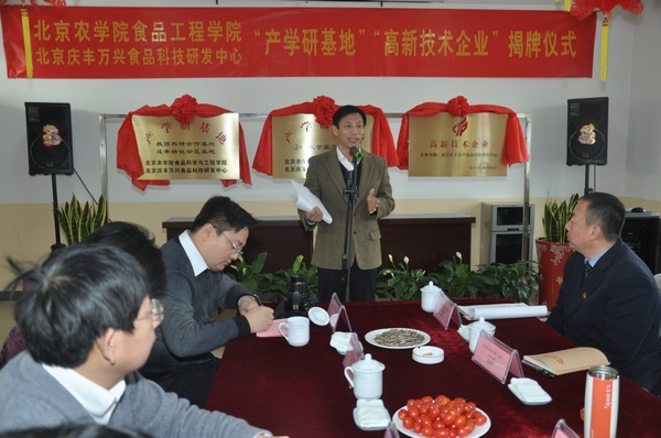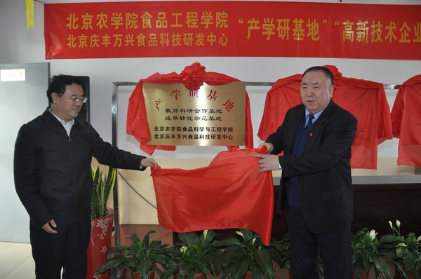 12月27日上午,副校长范双喜一行来到位于顺义的北京庆丰万兴食品科技研发中心调研工作,并为食品学院产学研基地揭牌。北京华天饮食集团公司党委书记、总经理朱玉岭等集团领导对范校长一行表示热烈欢迎。