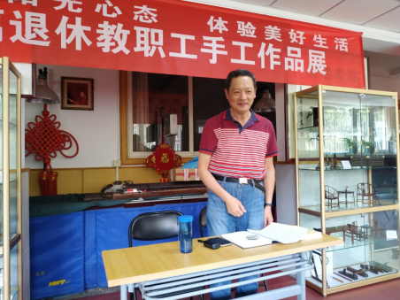 9月29日上午,两个学生支部的党员和入党积极分子参观了陈列在离退休工作处二层、离退休处党员关涛老师制作的微型红木制品。所有作品均以红木制成,彰显其高贵典雅;制品表面光滑润泽,构件之间以榫卯连接,精致唯美;小儿巴掌大的鸟笼无风自转,更是巧夺天工。同学们认真看、细细品,时时发出惊叹之声,深感我国传统工匠精神的精致奥秘与博大精深。
