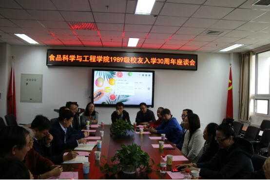 2019年10月19日,学校党委常委、副校长段留生,食品学院领导班子党登峰、张红星、王雪、马挺军,教师代表孙容芳、艾启俊、王秀德、易欣欣、徐艺青、綦菁华、张巍等应邀参会。座谈会由党总支书记党登峰主持。