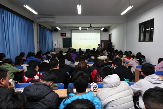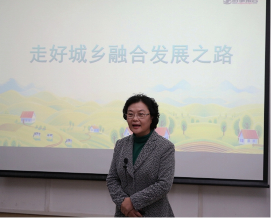 王慧敏校长从一二三产业分类引入,从城乡融合发展的重要意义、历程及成效、不平衡的现状和新路线图等四个方面为大家全面阐述解读了城乡融合发展的“前世今生”。着重强调了城乡融合发展是我国实施乡村振兴战略、实现“两个一百年”奋斗目标的必然要求,是我国经济社会发展进入新时代的客观要求;从人(户籍制度松绑)、地(农村承包地“三权分置”制度)、钱(农村金融服务)等要素自由流动加大、农村基础设施和公共服务日趋完善、城乡居民收入差距逐步减小等方面展示了城乡融合发展历程及取得的成效;通过提问交流,与师生们讨论分析了当前城乡融合发展不平衡现状的具体表现;描绘了通过促进城乡要素合理配置、推动城乡基本公共服务普惠共享、加快推动乡村基础设施提档升级、推动乡村经济多元化、促进农民收入增长等途径全面推进城乡融合发展的新路线图。