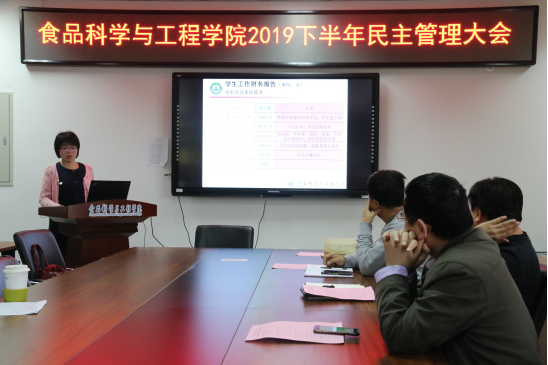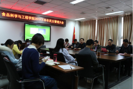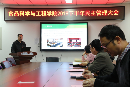 2020年1月7日,WilliamHill中文2019年下半年民主管理大会在食品楼218会议室召开。williamhill中国党委常委、副校长段留生,学院全体老师出席会议。会议共分为民主管理大会、工作总结会以及退休、调动老师欢送会三个部分,由党总支书记党登峰主持。