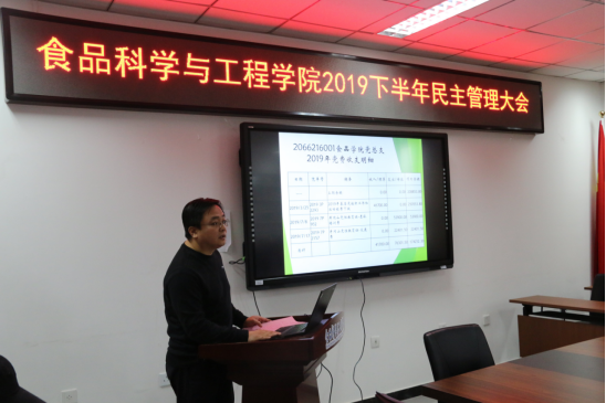 首先,党总支副书记、院长张红星做2019年工作报告。报告围绕教学、科研以及学生工作回顾了一年来的重大事件,总结了各项工作取得的成绩以及发现的不足,还对学院财务情况做了公开。