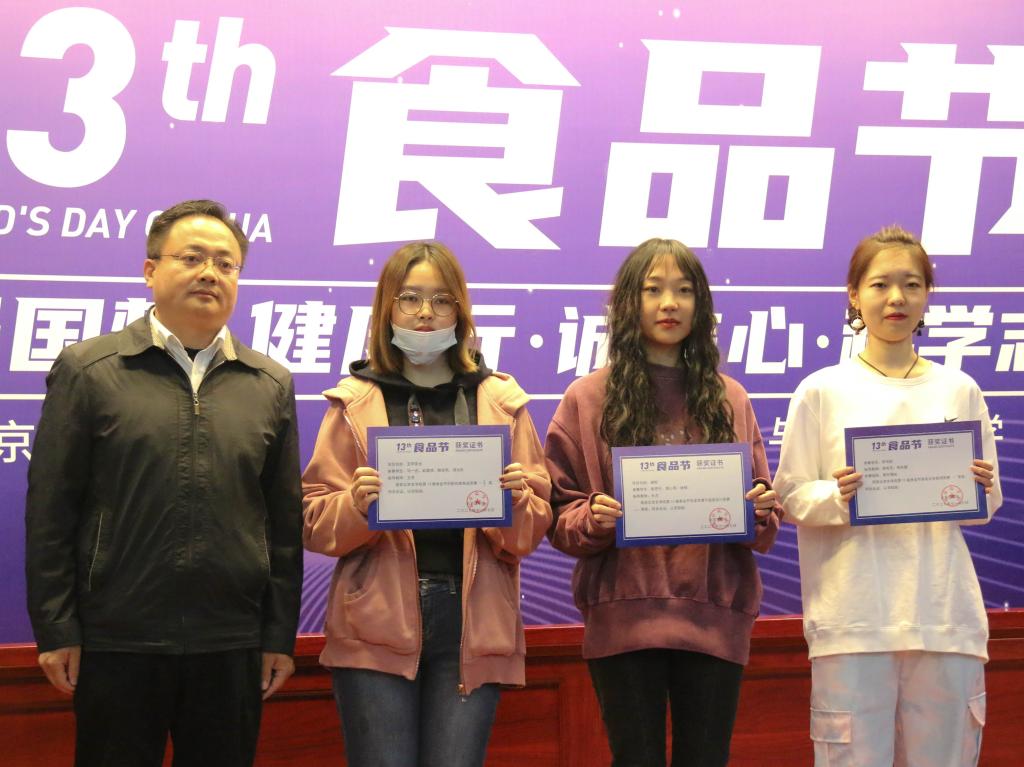 首先,由主持人白天琪代表学院揭晓了williamhill中国第13届食品节创新创意食品竞赛、食品安全检测竞赛和包装装潢与造型设计竞赛的各个奖项。与会学院领导马挺军、丁轲、王雪、党登峰依次为优秀奖、三等奖、二等奖、一等奖获奖代表颁发了获奖证书。
