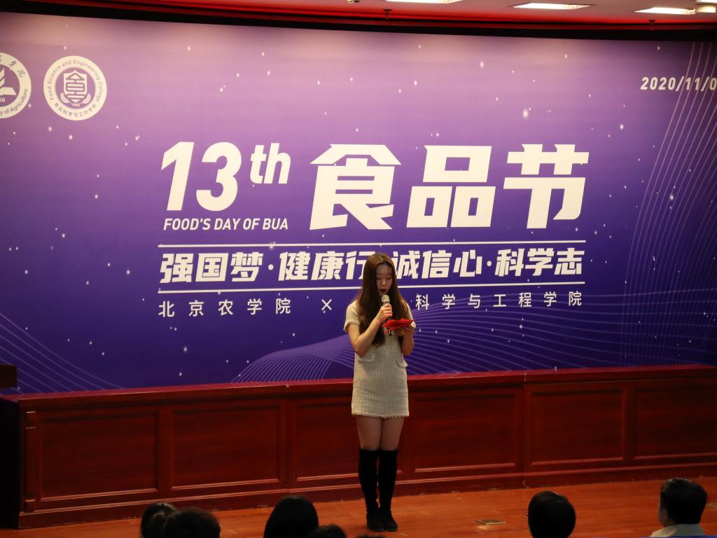 最后,学院党总支书记党登峰致闭幕辞。党书记首先感谢所有在抗疫工作和食品节筹备中辛苦付出的师生们,对食品节获奖师生表示祝贺。随后,党书记从责任与担当、创新与发展等方面分析了食品行业未来的机遇和挑战,激励师生要有责任担当和家国情怀,在抗疫和专业中有所作为。特别是大一新生们,要在学长打下的坚实基础上,努力学习、勤于实践,让第14届食品节办得更好。