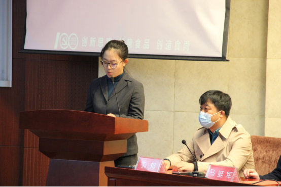随后,21级食品质量与安全2班费舒彤,作为新生代表发言。她说,“食品节”是食品人在以独有的方式向党和国家表达热爱,向中国共产党成立100周年表达祝贺。学校搭建的平台和学长的示范带头激励新生们学专业、用专业,让大家更有信心和力量,争做勤勉向上的新时代青年。