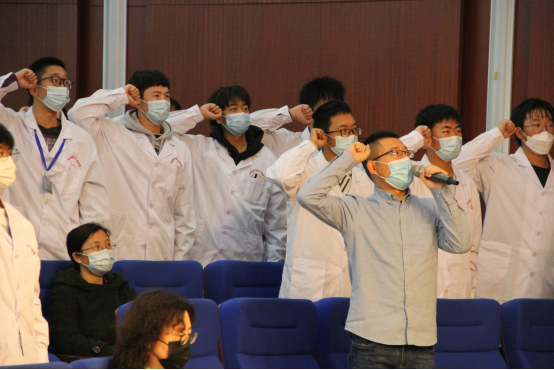 在庄严的氛围中,新入职教师张欣珂带领全体新生进行食品人入行宣誓,同学们激昂的宣誓声无一不在体现着他们对食品行业未来的憧憬。通过宣誓,在新生的心里种下了秉承理念,发扬精神,恪守职业道德,为促进食品行业的健康发展而努力奋斗的种子。作为新时代食品人,不仅仅要“民以食为天,食以安为先”,更要“安以质为本,质以诚为根”。