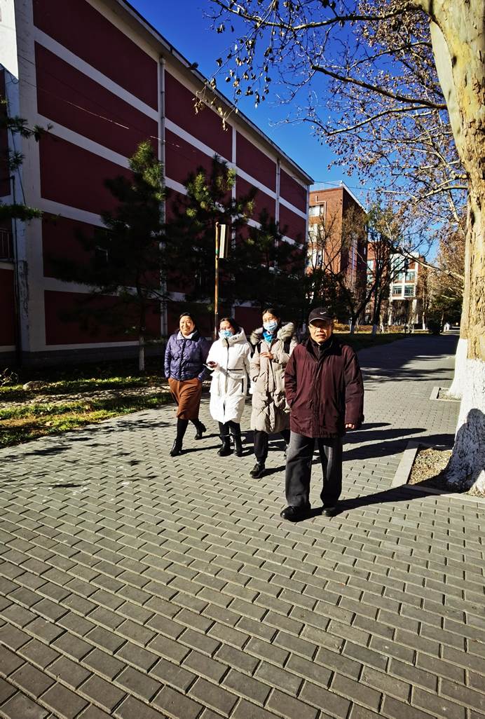 当日在校的会员们根据通知,合理安排了自己的时间,早早于食品楼一层大厅会合,然后从食品楼南门出发,途径第二食堂西门、教学楼B座北门,然后进入操场跑道,进行了长走锻炼,并在操场合影留念。