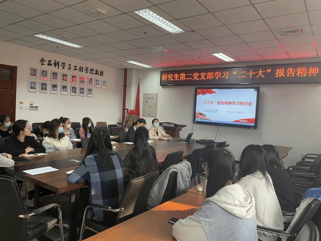 食品科学与工程教师党支部书记孙运金讲道:“党的二十大明确了中国共产党的中心任务就是带领全国各族人民全面建成社会主义现代化强国,实现第二个百年奋斗目标,以中国式现代化全面推进中华民族伟大复兴。这是中国共产党对中国人民的庄严承诺,也是践行诺言奋力开创中国特色社会主义新局面的历史开端。作为教师党支部书记,要强化对教师的思想引领,落实立德树人根本任务,激励党员发挥先锋模范作用,把党支部建设成为有效实现党的领导的坚强战斗堡垒”。
