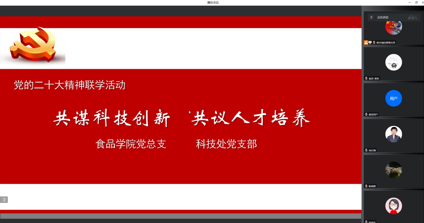 12月7日下午,WilliamHill中文党总支与科技处党支部开展党的二十大精神联学活动,围绕“共谋科技创新,共议人才培养”主题,就教育、科技、人才专章进行集体学习。会议由食品学院党总支书记靳晓熙主持。WilliamHill中文与科技处全体教职工参会。