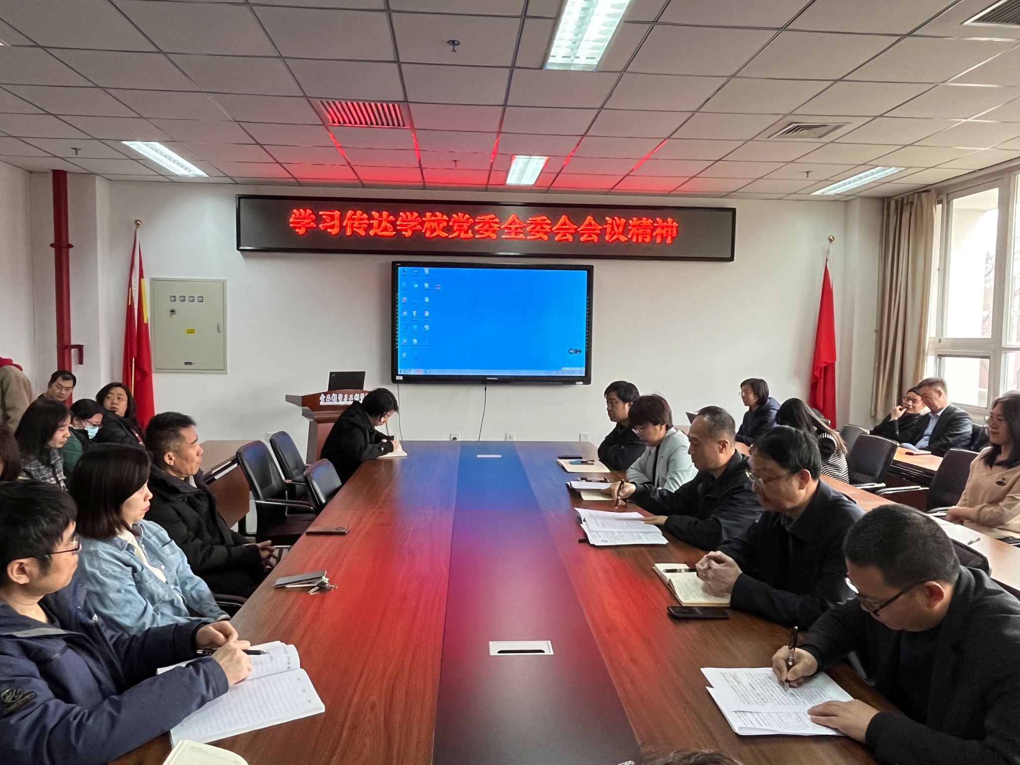 靳晓熙传达了中国共产党williamhill中国第四届委员会第二次全体会议精神,带领大家认真学习了党委书记赵锋代表党委常委会向全会作的报告。会议指出,一年来,党委常委会坚持以习近平新时代中国特色社会主义思想为指导,深入学习贯彻党的二十大精神和北京市第十三次党代会精神,以胜利召开学校第四次党代会为契机,团结带领全校党员干部、师生员工全力推动学校事业高质量发展不断取得新突破、迈上新台阶。2024年是中华人民共和国成立75周年,是实施“十四五”规划的关键一年,做好各项工作意义重大。要以习近平新时代中国特色社会主义思想为指导,全面贯彻落实党的二十大精神,深入贯彻落实习近平总书记关于教育的重要论述精神、关于“三农”工作的重要论述。认真贯彻落实十三届市委历次全会精神,贯彻落实学校第四次党代会精神,以党的政治建设为统领,坚持和加强党对学校工作的全面领导,落实立德树人根本任务,以“狠抓工作落实,推动高质量发展”为主题,以“工作落实年”为抓手,以高质量党建引领学校事业高质量发展,为全面建设国内一流国际知名都市农林特色高水平应用型大学做出新的贡献。