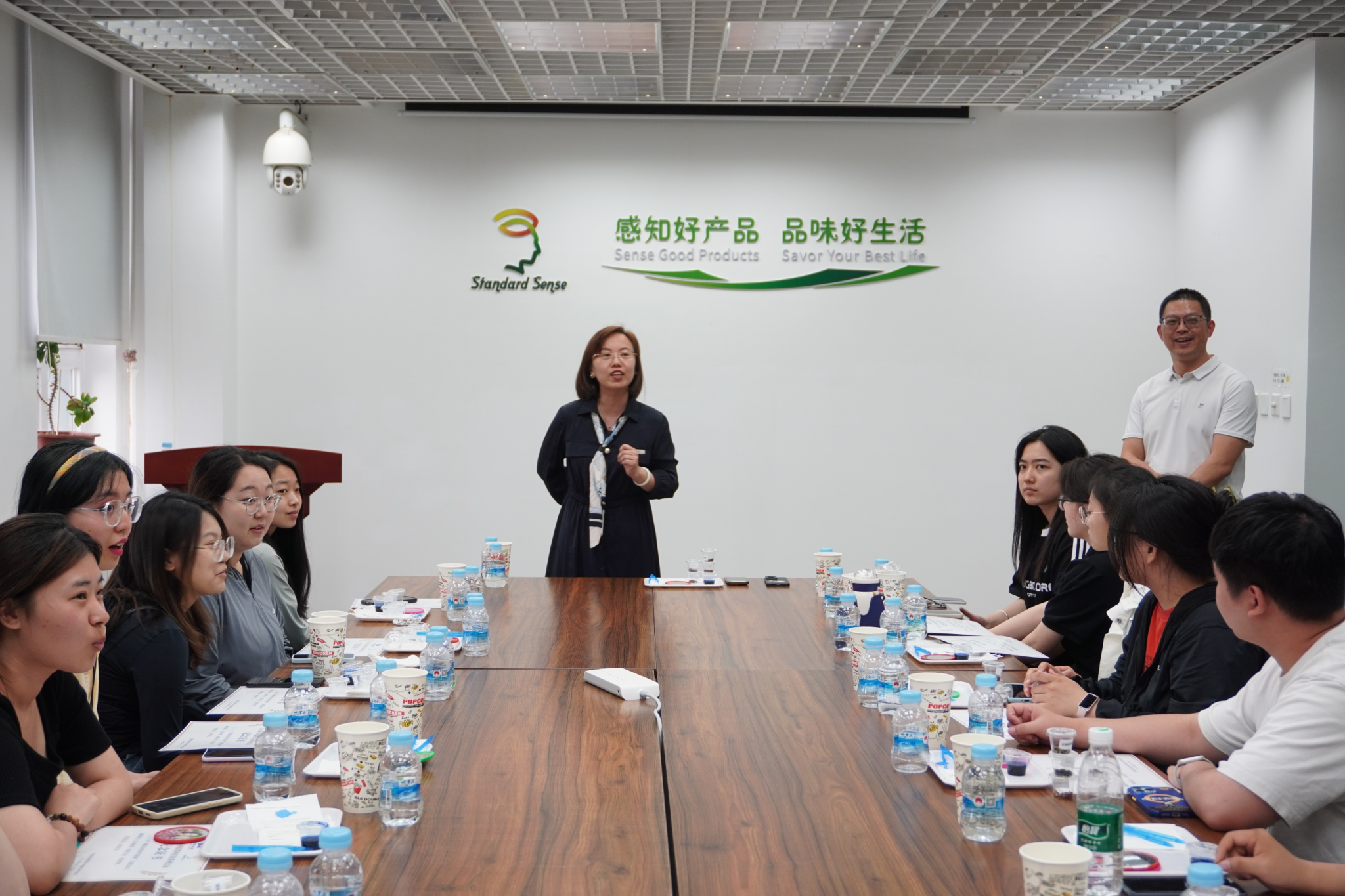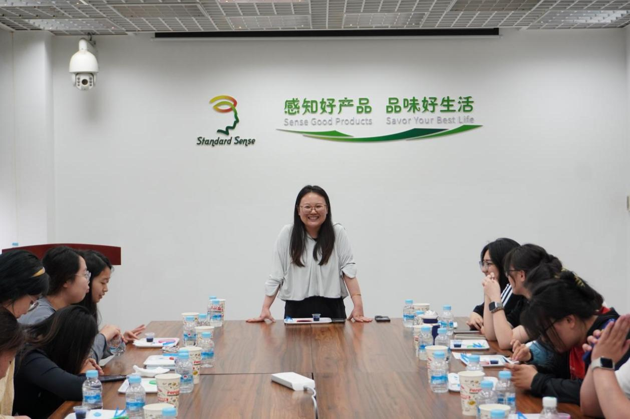 何晓宁老师带领大家进行了一次深度感官互动体验。通过“你的味觉有多灵之味蕾大比拼、你的嗅觉有多强之闻香识万物和你懂花椒有多深之椒麻万花筒”这三个直观的感官评价让同学们沉浸式的体验了感官科学的玄妙之处,同学们认真体验、用心感受。项雅科老师带领大家参观国内首家通过CNAS认可的感官分析实验室。同学们认真学习了感官技术的科学本质和感官品质的测量方法,并通过“一杯优质牛奶的定义”和“鲜食玉米赏味期的界定”等案例分析直观体验了感官分析的实际应用。