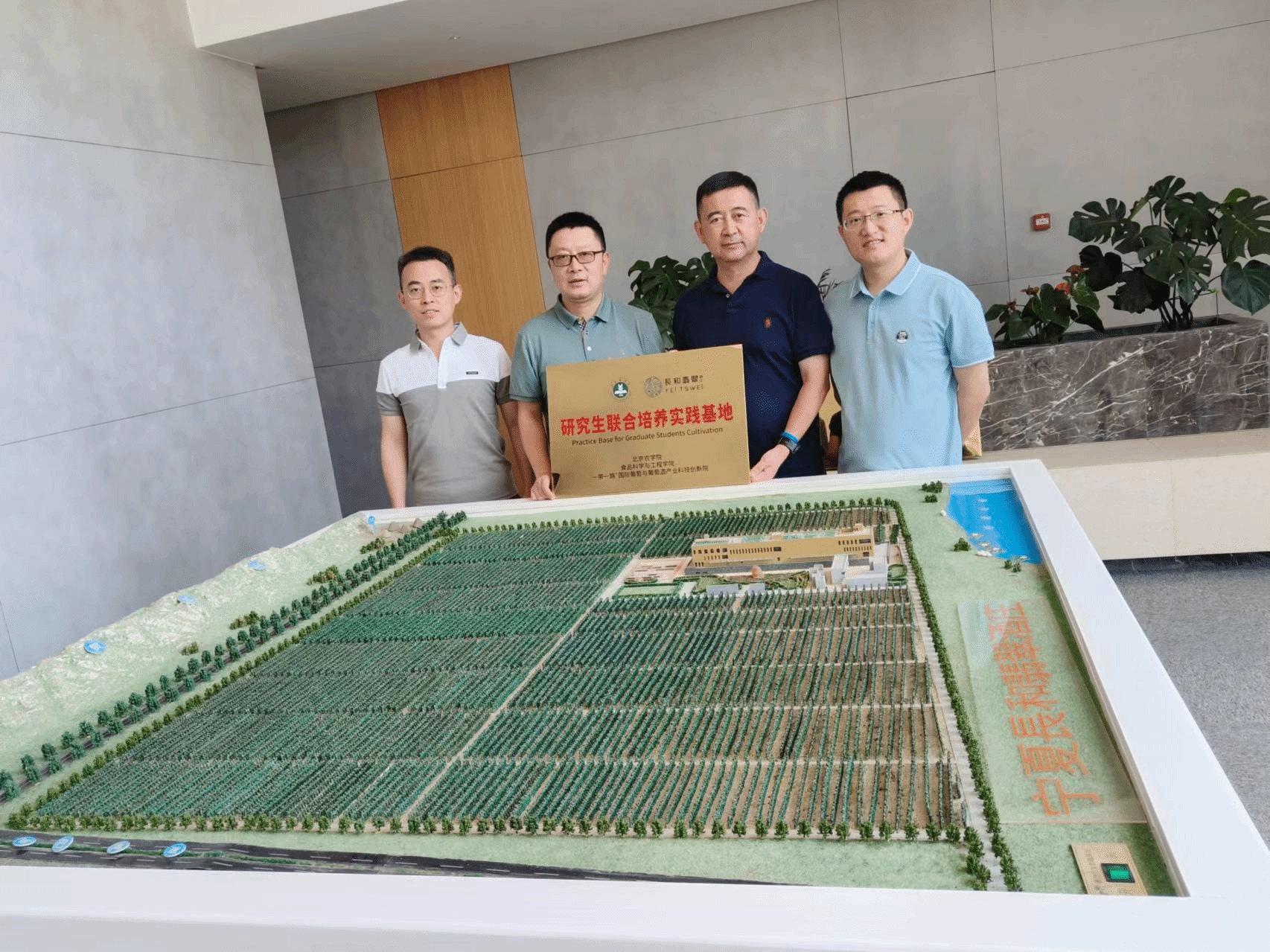 在长和翡翠酒庄,张欣珂代表团队对双方合作申请的“2023年宁夏葡萄及葡萄酒特色产业集群项目产学研用科技创新项目”的进展情况及初步结果进行了汇报。团队对长和翡翠酒庄的新酒进行了评价,李德美对酒庄后期的成品酒调配方案进行了指导。双方为“williamhill中国研究生联合培养实践基地”进行了挂牌。