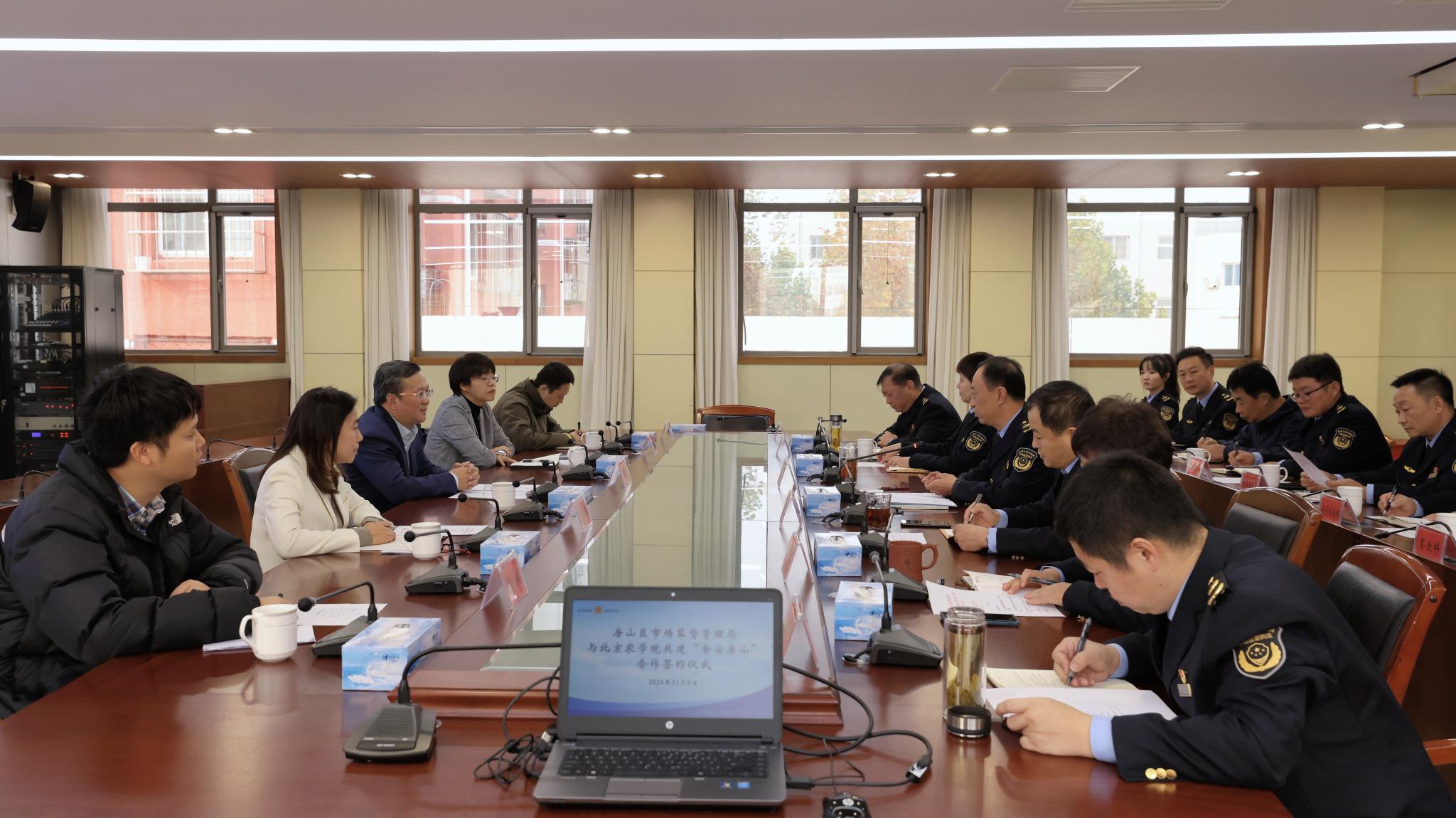 签约仪式上,李军局长代表房山区市场监督管理局与陈湘宁教授签署了合作协议。双方将在食品安全课题研究、突发事件应急保障、监管人才队伍培训、人才培养等方面开展务实合作。