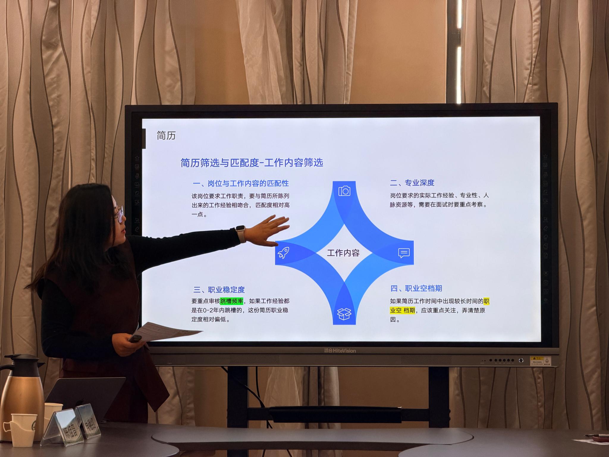 肖艳红还从资深人力资源专家的角度,详细讲解了职业生涯规划、简历制作技巧、企业简历筛选的核心关注点及面试技巧,同学们纷纷表示受益匪浅。
