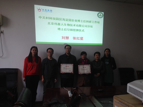 2015年2月6日,中关村科技园区海淀园企业博士后科研工作站北京伟嘉人生物技术有限公司分站分别授予张红星教授、刘慧教授博士后导师并颁发聘书。聘任仪式在学校第三会议室举行。按照议程安排,首先由主持人宣读《中关...